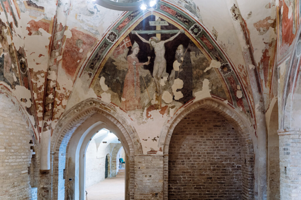 Situato su un colle a 411 metri, nel cuore della Media Valle del Tenna, Montegiorgio è un borgo che racchiude millenni di storia e un patrimonio artistico di straordinario valore. Le origini risalgono agli insediamenti piceni e romani, come dimostrano i reperti archeologici, mentre il nucleo urbano attuale prende forma nel Medioevo attorno alla Chiesa di Santa Maria Grande, oggi San Francesco. Le mura castellane, i portali storici e i vicoli lastricati conservano l’atmosfera di un’epoca in cui il borgo fu feudo farfense, libero comune e centro di vivaci scambi artigianali e commerciali, anche grazie alla presenza di una comunità ebraica.